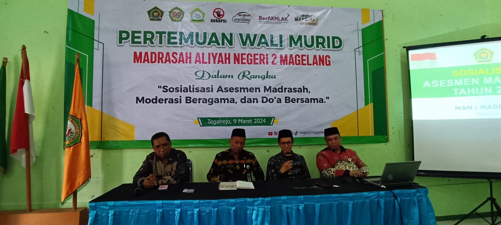 Magelang, – MAN 2 Magelang menggelar pertemuan wali murid kelas XII sebagai bagian dari persiapan menyambut asesmen madrasah pada tahun pelajaran 2023/2024. Acara yang berlangsung di aula sekolah ini dihadiri oleh para orang tua, siswa, serta sejumlah guru (9/3).