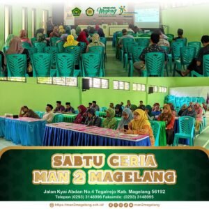 Pada hari Sabtu yang ceria, Zen Hilali, salah satu guru MAN 2 Magelang, melaksanakan diseminasi Bimbingan Teknis (Bimtek) Tindak Lanjut AKMI Tahun 2024. Bertempat di Aula MAN 2 Magelang, acara ini dihadiri oleh Kepala Madrasah, Bapak H. Ahmad Sultoni, S.Pd.I, M.Pd, serta seluruh guru dan pegawai (19/10).