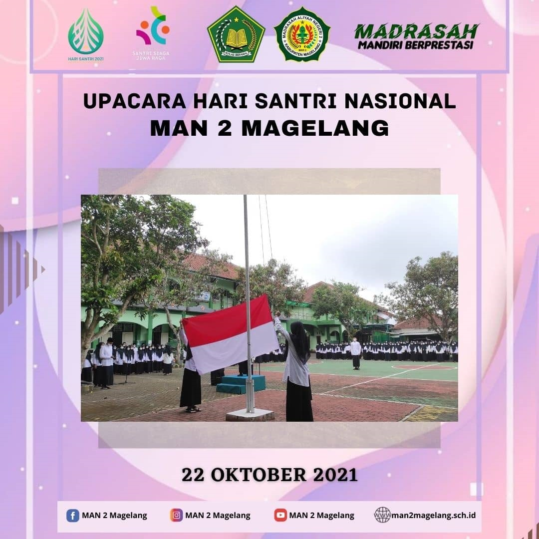Magelang, mandama.sch.id – Upacara Hari Santri Nasional telah dilaksanakan di Lapangan MAN 2 Magelang, diikuti oleh seluruh Dewan Guru, Pegawai dan siswa Kelas XII dengan penuh khidmad (22/10). Pembina Upacara Drs. Muslih, M.Pd menyampaikan pesan bahwa kita sebagai santri harus siap siaga jiwa dan raga agar bisa menjadi generasi penerus bangsa yang berprestasi dan bermanfaat dunia dan akhirat.