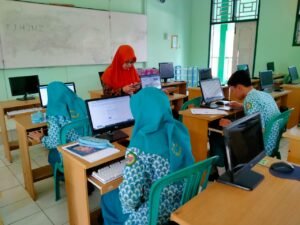 MAGELANG –Tiga Peserta OBA MAN 2 Magelang mengikuti kegiatan simulasi Olimpiade Bahasa Arab Tahun 2023 di Laboratorium Komputer, Kamis (10/8).